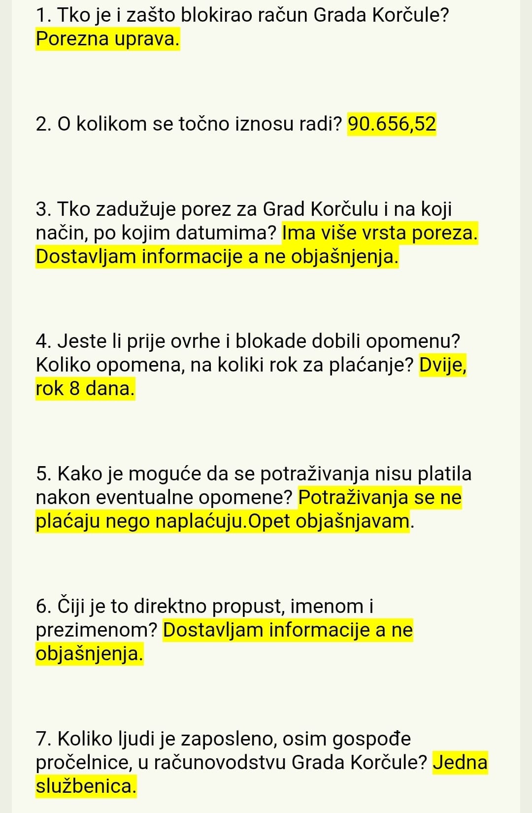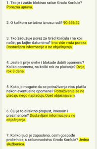 Pitanje o tome što se zaista dogodilo uputili smo odgovornoj osobi, a to je po zdravorazumskoj logici pročelnica Upravnog odjela za proračun i financije, Bernarda Tomić. Pitali smo je kako je došlo do situacije da Porezna uprava blokira Grad, na koji se način zadužuje porez, tko je odgovoran za nastalu situaciju i slično. Pročelnica Tomić na većinu pitanja nije dala konkretan odgovor, odgovori su šturi, bez objašnjenja, a ton korespondencije neljubazan i osoran. Čitavu korespondenciju pogledajte u screenshotu maila.