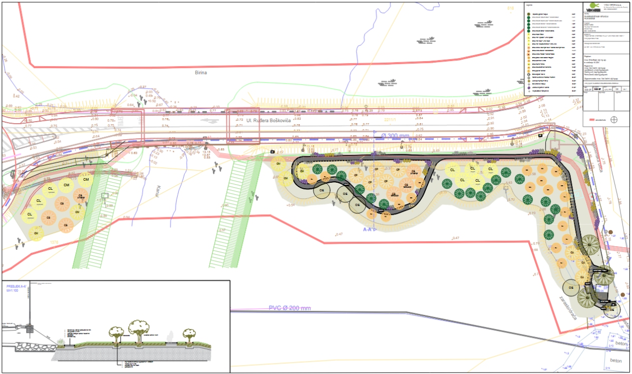 Građani bi mogli dobiti novi mirisni prostor pun ružmarina, smilja, kadulje, lavande te citrusnog voća na čak 3.700 kvadratnih metara između kružnog toka Birina i ulaza u Stablinu. Problem stalnih poplava riješit će se podizanjem terena, a testirat će se dvije različite podloge za citrusno voće kako bi se utvrdilo koje bolje podnose slane uvjete. Sadit će se limun, naranča, mandarina, grejpfrut i pomelo.