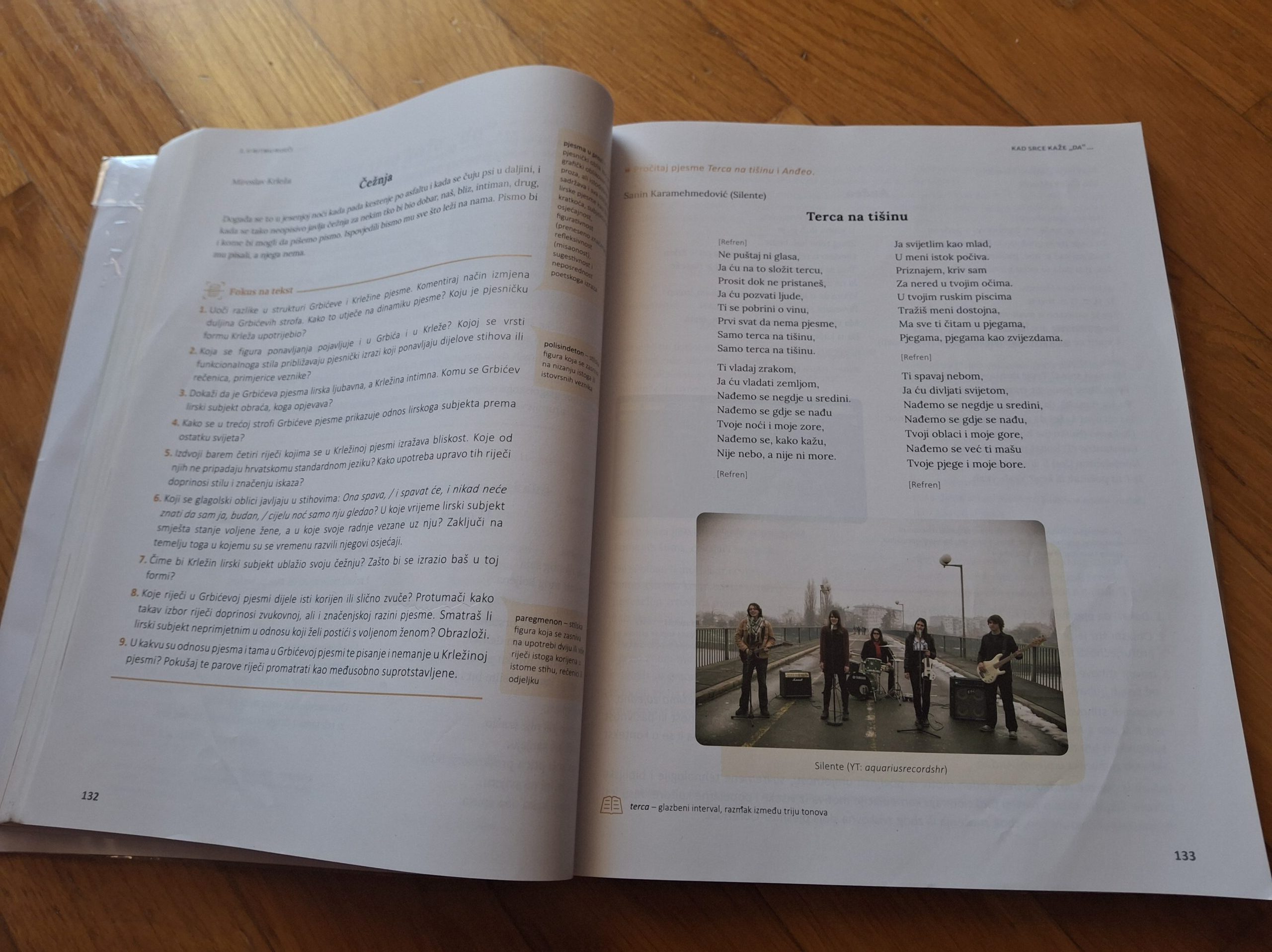 Pjesma Terca na tišinu dubrovačkog benda Silente našla se u udžbeniku Tragom teksta za Hrvatski jezik. Riječi Sanina Karamehmedovića već su dirnule mnoge koji su se u njima pronašli, a možda na neki neočekivan način i izgubili. Ipak, uvrštavanje u čitanku jedna je sasvim nova vrsta priznanja.