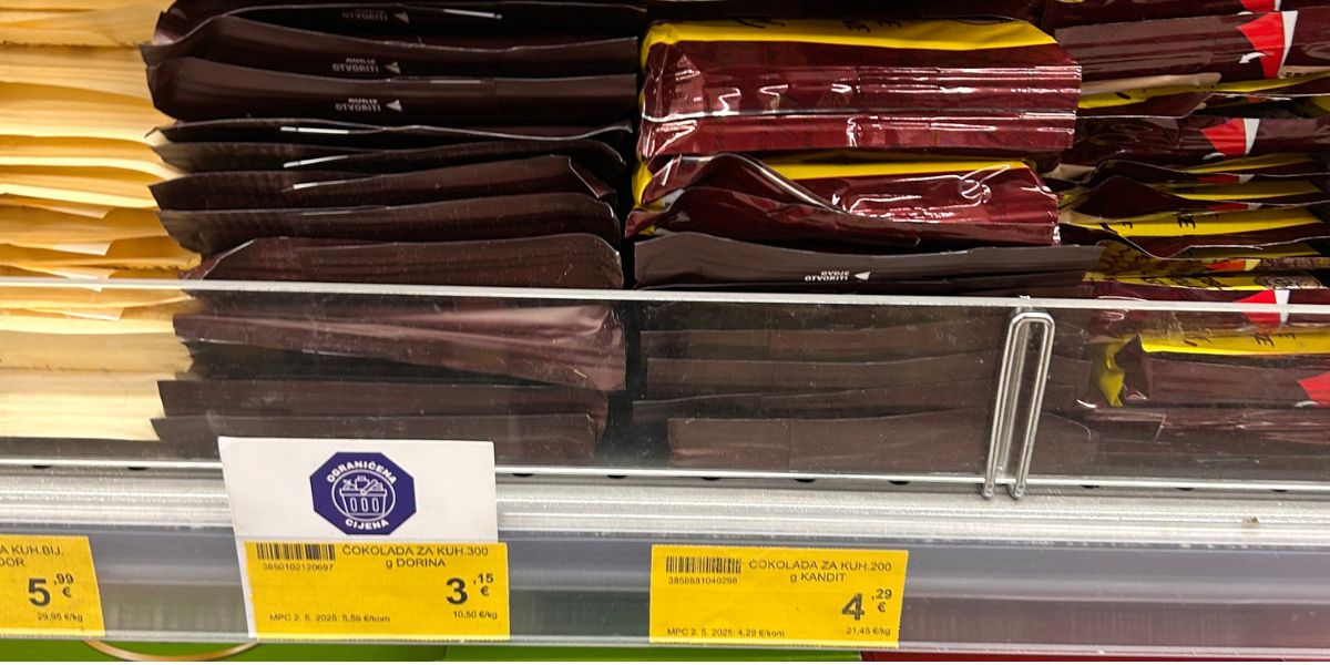 Podsjetimo i to kako je vlada svojom odlukom svrstala i čokoladu za kuhanje na popis proizvoda ograničenih cijena pa tako čokoladu za kuhanje pojedinih brendova možete pronaći po cijeni od oko 3 eura za tristo grama, što je pozitivna strana priče. Ipak, ako ne otvorite dobro oči ili ne uspijete pronaći čokoladu za kuhanje po ograničenoj cijeni, mogli biste je platiti kao pravi luksuz.