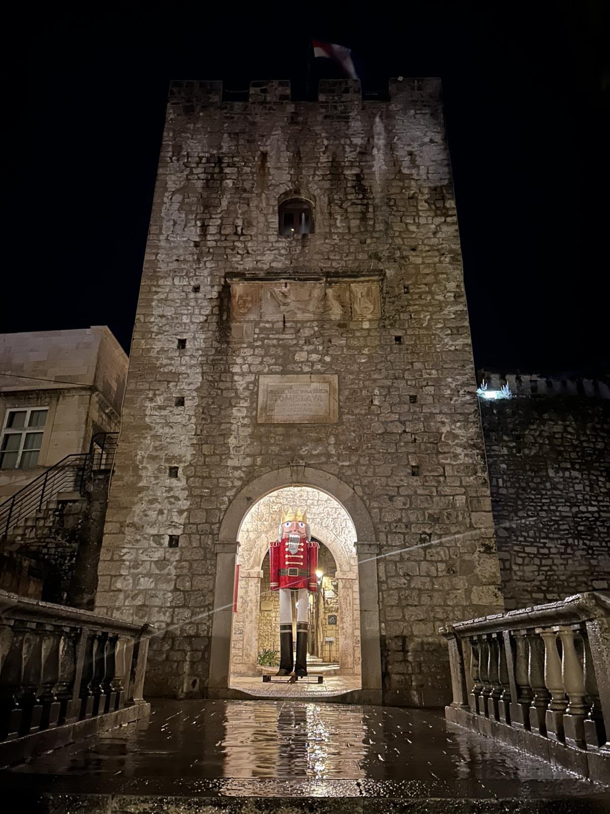 Ali ne samo za te! Orahar Podrumovski je i parodija na nedavni događaj kad je nekolicina lokalnih mladića, pod utjecajem alkohola u blagdansko vrijeme, figuru Orašara koja je ukrašavala prostor ispred jednog korčulanskog restorana, pokušala staviti na stup srama ispred katedrale.