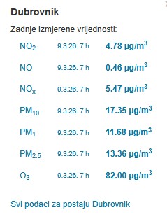 No, kad je u pitanju kvaliteta zraka na području Dubrovnika, na svu sreću, naši stanovnici mogu mirno disati punim plućima je prema podacima koji su jutros dostupni na stranicama Hrvatskog hidrometeorološkog saveza, vidljivo je kako je kvaliteta zraka na području Dubrovnika jako dobra. Podaci u mjernoj postaji pokazuju kako je većina parametara daleko ispod graničnih vrijednosti koje bi mogle biti zabrinjavajuće.