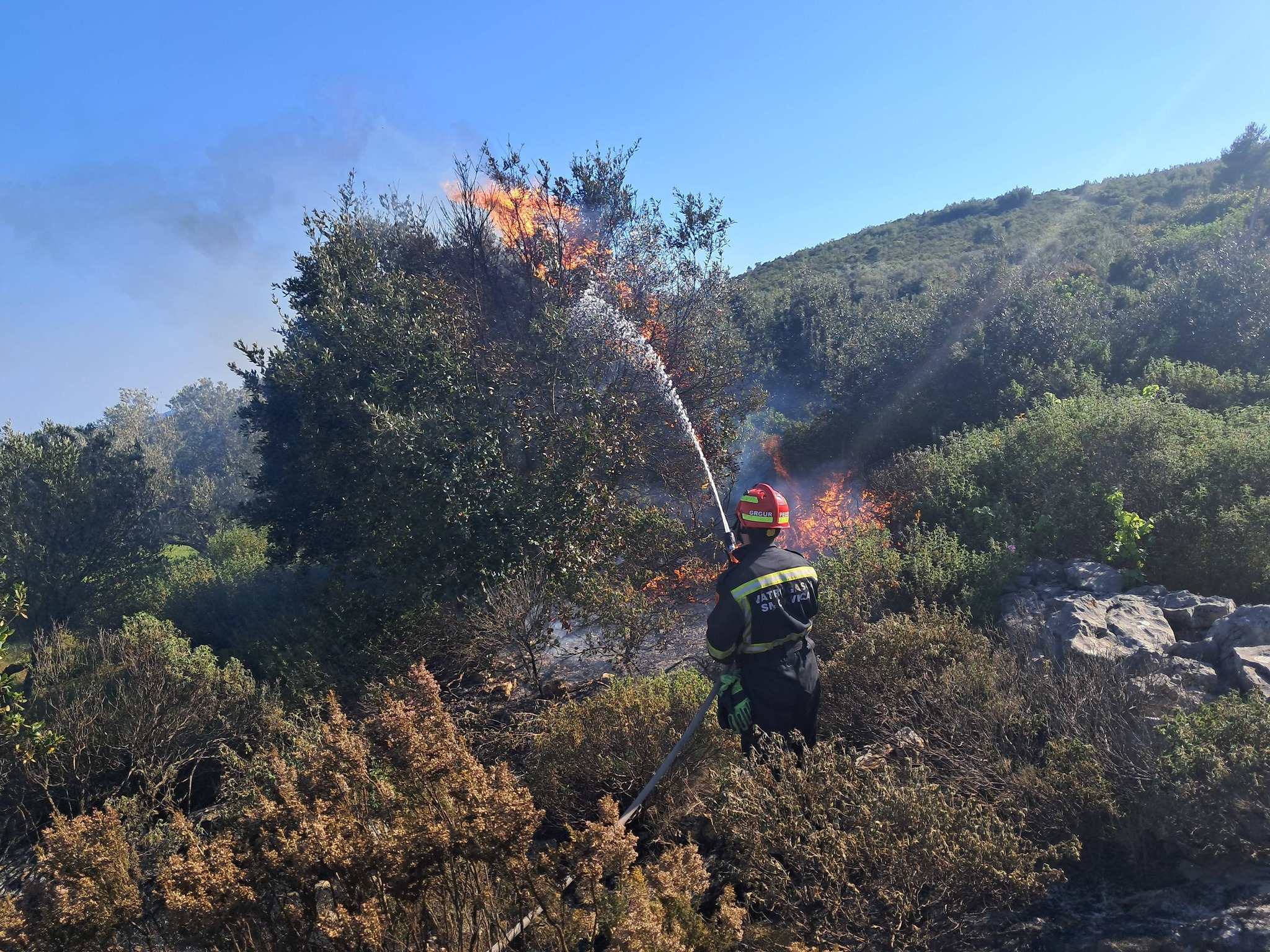 Na intervenciju je izašlo 12 vatrogasaca s tri vozila, a požar je zahvatio oko 10.000 četvornih metara makije i niskog raslinja. Unatoč brzoj intervenciji vatrogasaca, opožarena površina bila je značajna, no sve masline i ostale poljoprivredne kulture uspješno su obranjene.